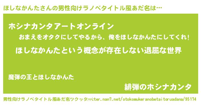 | 胡散臭い通販商品みたいなあだ名 | 『来世でも幸せになれる健康食品…その名も「ほしなかんた」』 |