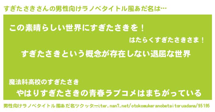 | 意味不明あだ名 | 『永久保存すぎたさき』『自称すぎたさき』 |