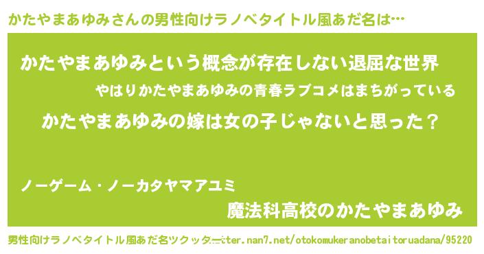 | 伝説のあだ名 | 『覚醒した僧侶かたやまあゆみ』 |