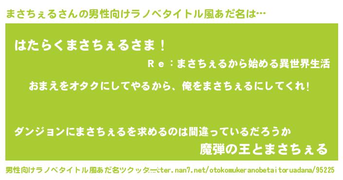 | 胡散臭い通販商品みたいなあだ名 | 『100人中100人が認めたマグネット磁石…その名も「まさちぇる」』 |