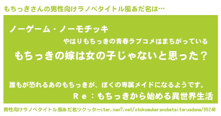 | 女子向けラノベタイトル風あだ名 | 『もちっき様がみてる』『もちっき恋絵巻』 |