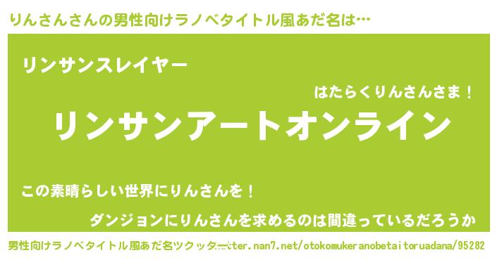 | 女子向けラノベタイトル風あだ名 | 『りんさん姫と円卓の騎士』 |