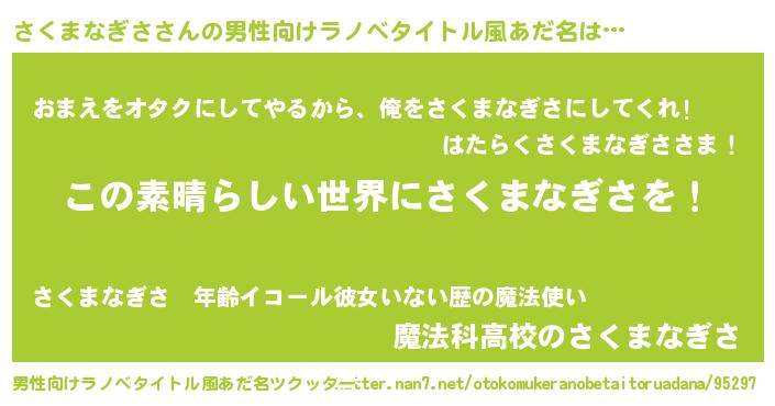 | 伝説のあだ名 | 『救世主となる占い師さくまなぎさ』 |