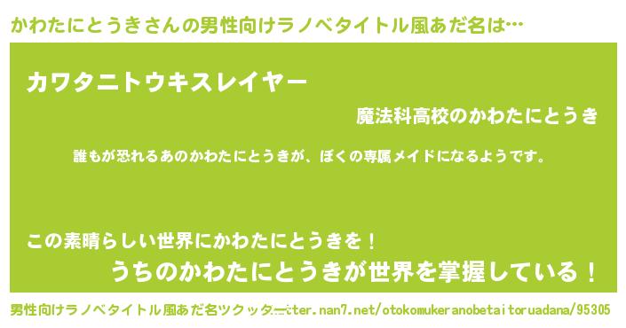 | 意味不明あだ名 | 『永久保存かわたにとうき』 |