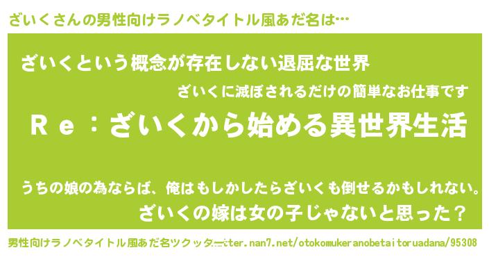 | ヘコむあだ名 | 『ざいく(笑)』『ざいっぺ』 |