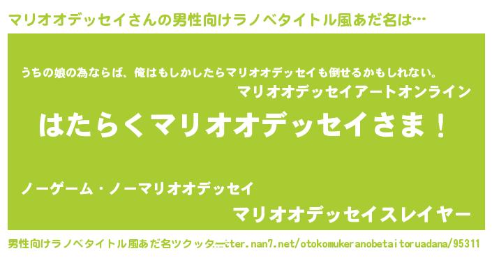 | 女子向けラノベタイトル風あだ名 | 『首の姫と首なしマリオオデッセイ』 |