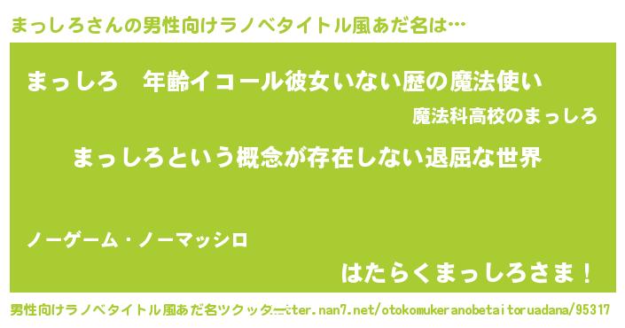 | 意味不明あだ名 | 『永久保存まっしろ』『自称まっしろ』 |