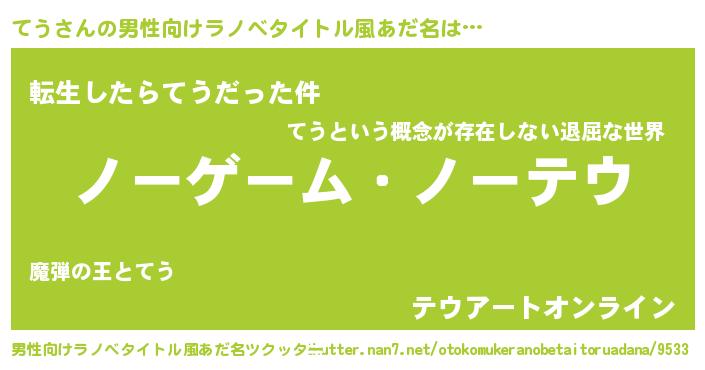 | 女子向けラノベタイトル風あだ名 | 『死神てうの再婚』『てうの玉の輿計画!』 |