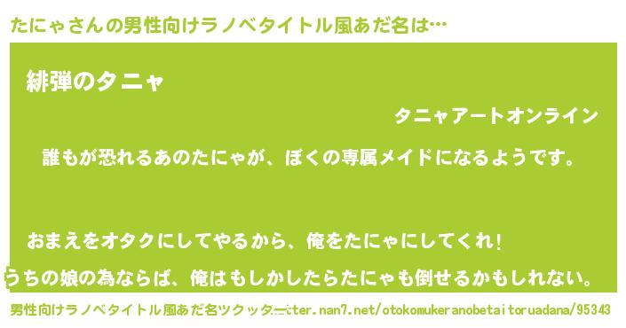 | 女子向けラノベタイトル風あだ名 | 『異世界でカフェたにゃを開店しました。』 |