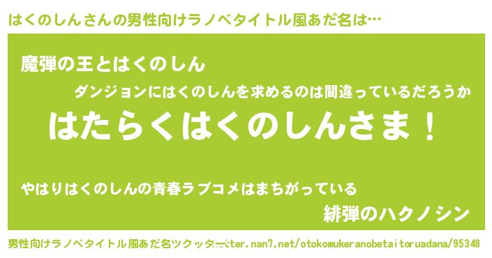 | 意味不明あだ名 | 『住所不定無職はくのしん(91歳)』 |