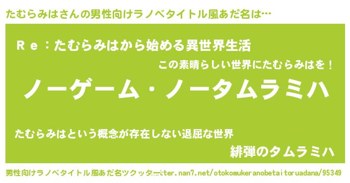 | ヒーロー風カッコイイあだ名 | 『慈愛の使者たむらみは』『仮面タムダー』 |