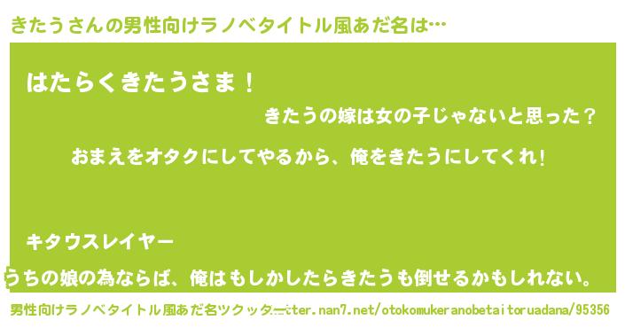 | 女子向けラノベタイトル風あだ名 | 『きたう夫妻のなれそめ』 |