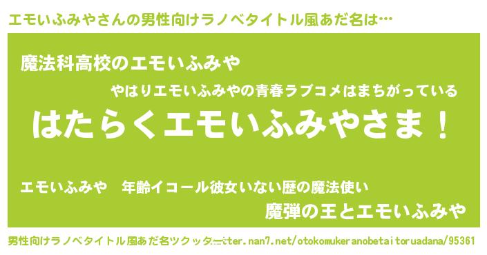 | 意味不明あだ名 | 『自称エモいふみや』 |