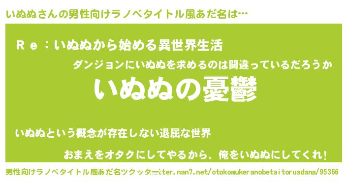 | 女子向けラノベタイトル風あだ名 | 『(仮)いぬぬのやんごとなき事情』 |