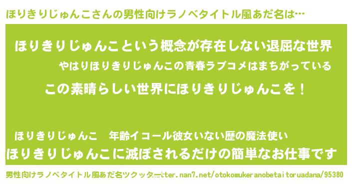 | 胡散臭い通販商品みたいなあだ名 | 『あなたにだけ特別に提供する100年もののヴィンテージワイン…その名も「ほりきりじゅんこ」』 |