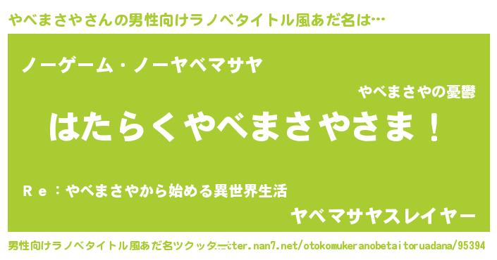 | ヒーロー風カッコイイあだ名 | 『友情の使者やべまさや』『銀牙騎士ヤベ』 |