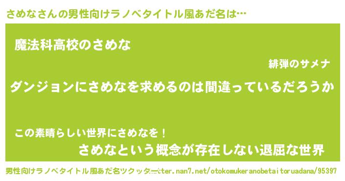 | 女子向けラノベタイトル風あだ名 | 『さめなは平凡を望む』 |