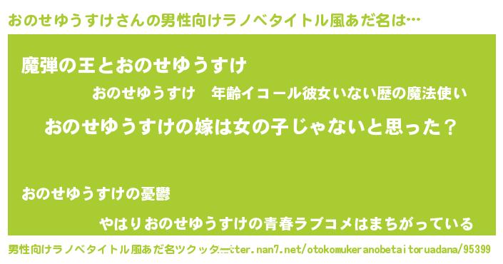 | 欧米人風あだ名 | 『ウサインおのせゆうすけ』 |