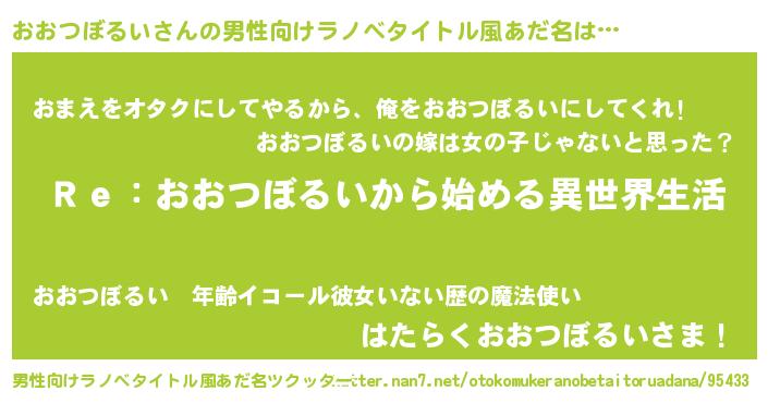 | 女子向けラノベタイトル風あだ名 | 『闇のおおつぼるい』 |