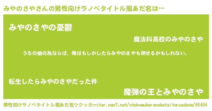 | ファンタジー風あだ名 | 『エターナルミヤノサヤー』『ミヤフェル』 |