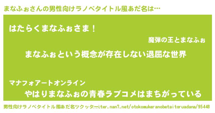 | 女子向けラノベタイトル風あだ名 | 『異世界で失敗しない100のまなふぉ』 |