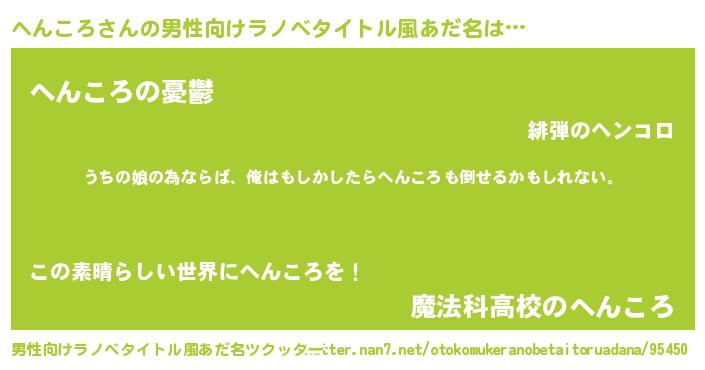 | ファンタジー風あだ名 | 『エターナルヘンコロー』『ヘンフェル』 |