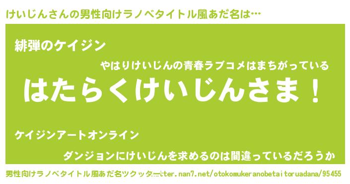 | 胡散臭い通販商品みたいなあだ名 | 『信頼と実績のサプリメント…その名も「けいじん」』 |