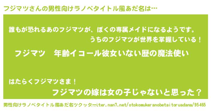 | 女子向けラノベタイトル風あだ名 | 『フジマツの玉の輿計画!』 |