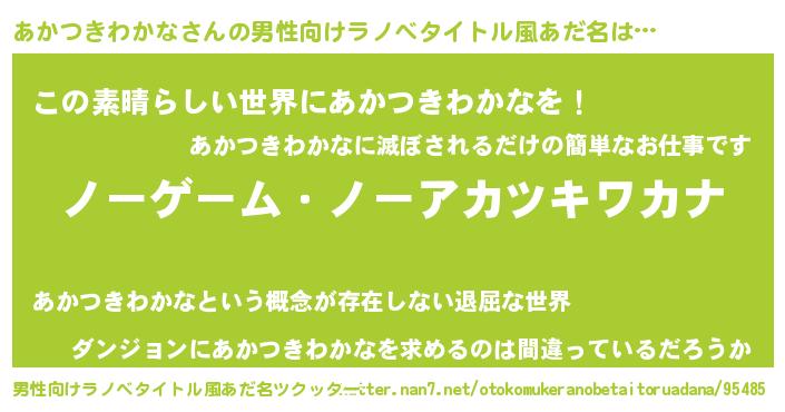 | ヘコむあだ名 | 『あかお』『あかつきわかな(笑)』 |