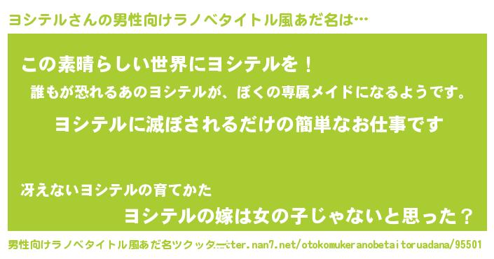 | 意味不明あだ名 | 『住所不定無職ヨシテル(65歳)』 |