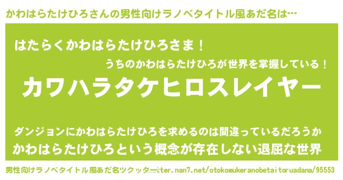 | ヘコむあだ名 | 『かわはらたけひろ(爆)』『かわっちょ』 |