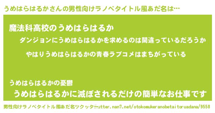 うめはらはるかさんの男性向けラノベタイトル風あだ名をツクッター!