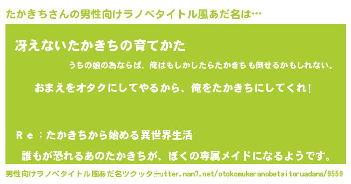 | 女子向けラノベタイトル風あだ名 | 『たかきち夫妻のなれそめ』 |
