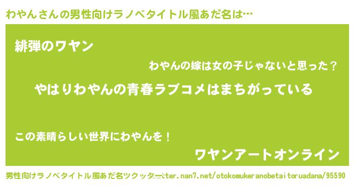 | 意味不明あだ名 | 『わやんフォーエバー』『ペロリンわやん』 |
