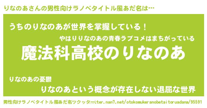 | 女子向けラノベタイトル風あだ名 | 『りなのあアンティーク』 |