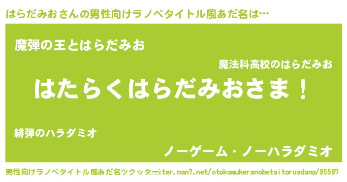 | 伝説のあだ名 | 『魔王と互角に渡り合う錬金術士はらだみお』 |