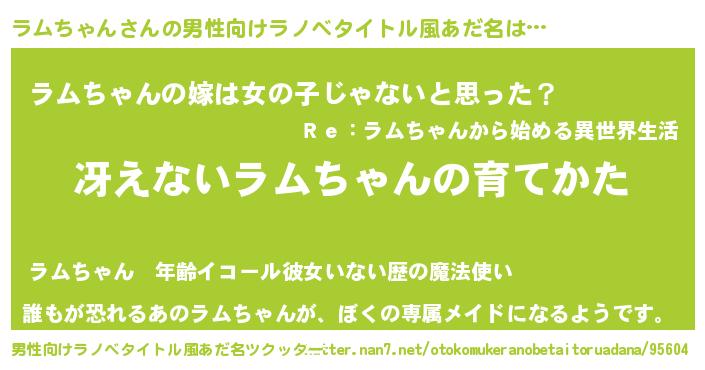 | 女子向けラノベタイトル風あだ名 | 『男装ラムちゃんの憂鬱な任務』 |
