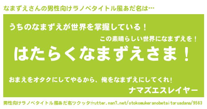 | ヒーロー風カッコイイあだ名 | 『仮面ナマダー』『天空の使者なまずえ』 |