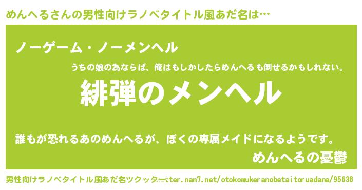 | ヒーロー風カッコイイあだ名 | 『正義の使者めんへる』『ネオメンヘル』 |