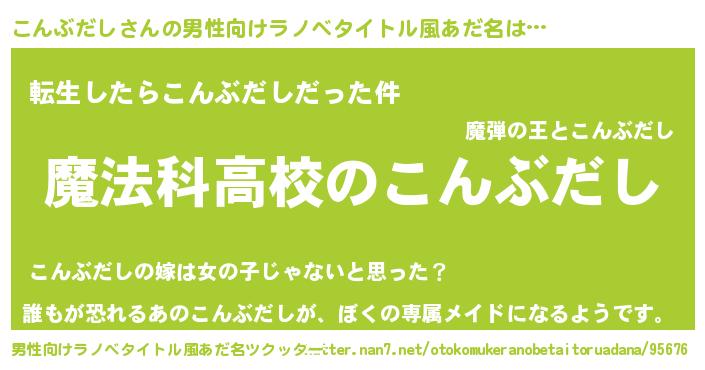こんぶだしさんの男性向けラノベタイトル風あだ名をツクッター!