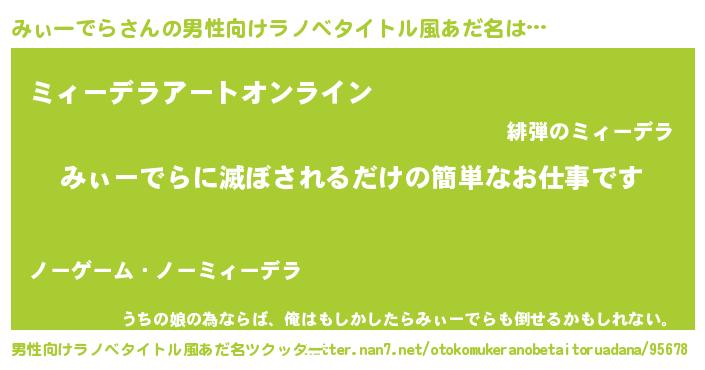 | 胡散臭い通販商品みたいなあだ名 | 『モテモテ間違いなしブレスレット…その名も「みぃーでら」』 |