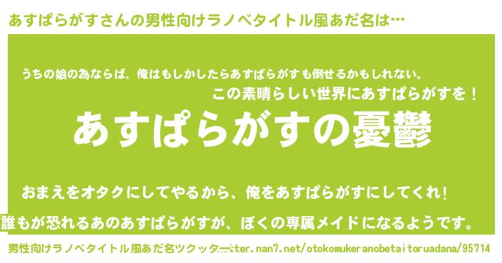 あすぱらがすさんの男性向けラノベタイトル風あだ名をツクッター!