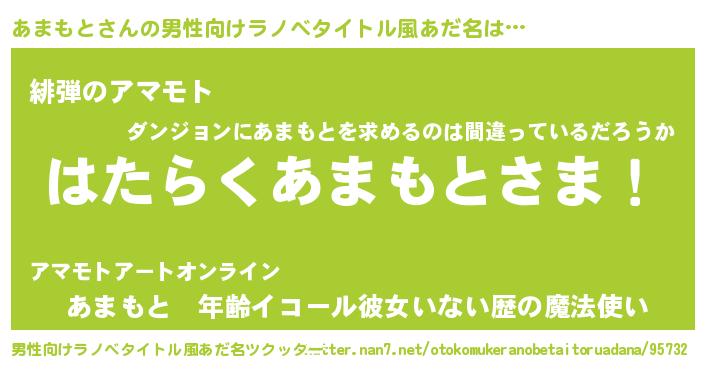 | ヒーロー風カッコイイあだ名 | 『魔戒騎士アマ』『スーパーアマモト』 |