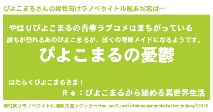 | 女子向けラノベタイトル風あだ名 | 『(仮)ぴよこまるのやんごとなき事情』 |
