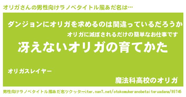 | ヒーロー風カッコイイあだ名 | 『銀牙騎士オリ』『最強戦士オリガ』 |