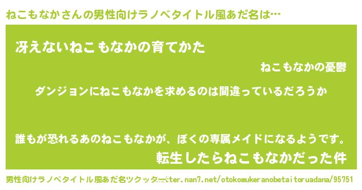 | 女子向けラノベタイトル風あだ名 | 『ねこもなかは平凡を望む』 |