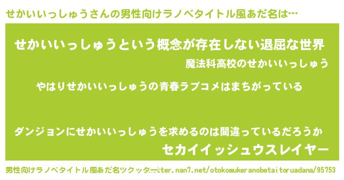| ポケモン風あだ名 | 『セカイダネ』『ゼニセカ』 |
