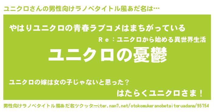 | 女子向けラノベタイトル風あだ名 | 『(仮)ユニクロのやんごとなき事情』 |
