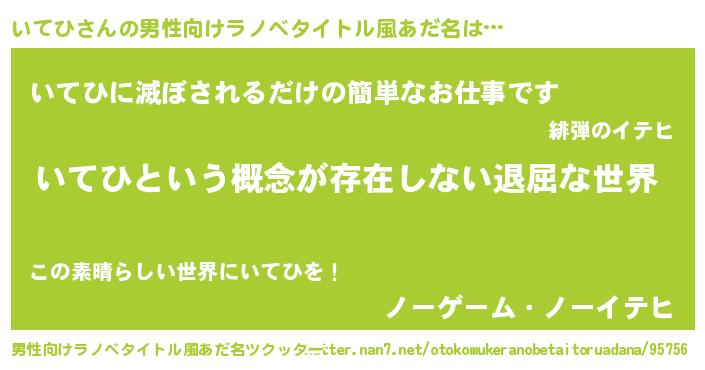 | 女子向けラノベタイトル風あだ名 | 『いてひの契約王妃』『いてひ恋絵巻』 |