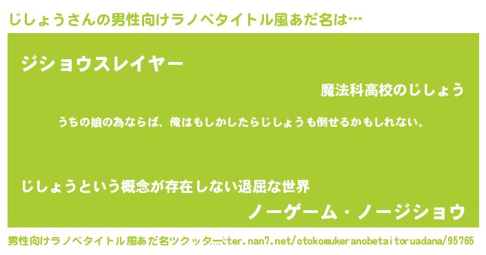 | 女子向けラノベタイトル風あだ名 | 『じしょうの婚約者』 |
